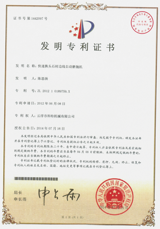企業(yè)組建了“云浮市石材機(jī)械裝備工程技術(shù)研究開發(fā)中心”,并與高校和科研院所密切合作,致力于光機(jī)電一體化產(chǎn)品的研發(fā)、生產(chǎn)、銷售和服務(wù)。主要產(chǎn)品有框架鋸、全自動(dòng)連續(xù)磨拋機(jī)、橋式自動(dòng)切割機(jī)、全自動(dòng)仿形石線機(jī)、數(shù)控金剛石繩鋸、裁切機(jī)等。產(chǎn)品具有自動(dòng)化程度高、加工精度高和生產(chǎn)效率高等特點(diǎn)。產(chǎn)品除國(guó)內(nèi)銷售外,還出口到歐美、東南亞、韓國(guó)、印度、中東、非洲、俄羅斯、澳大利亞等國(guó)家和地區(qū),深受用戶好評(píng)。“橋式自動(dòng)切割機(jī)”被認(rèn)定為廣東省高新技術(shù)產(chǎn)品,擁有發(fā)明專利1項(xiàng)、實(shí)用新型專利1項(xiàng)。